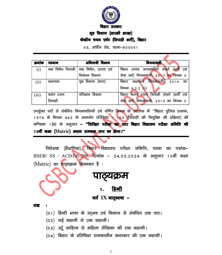 Syllabus for Prohibition Constable, Jail warder & Mobile Squad Constable.